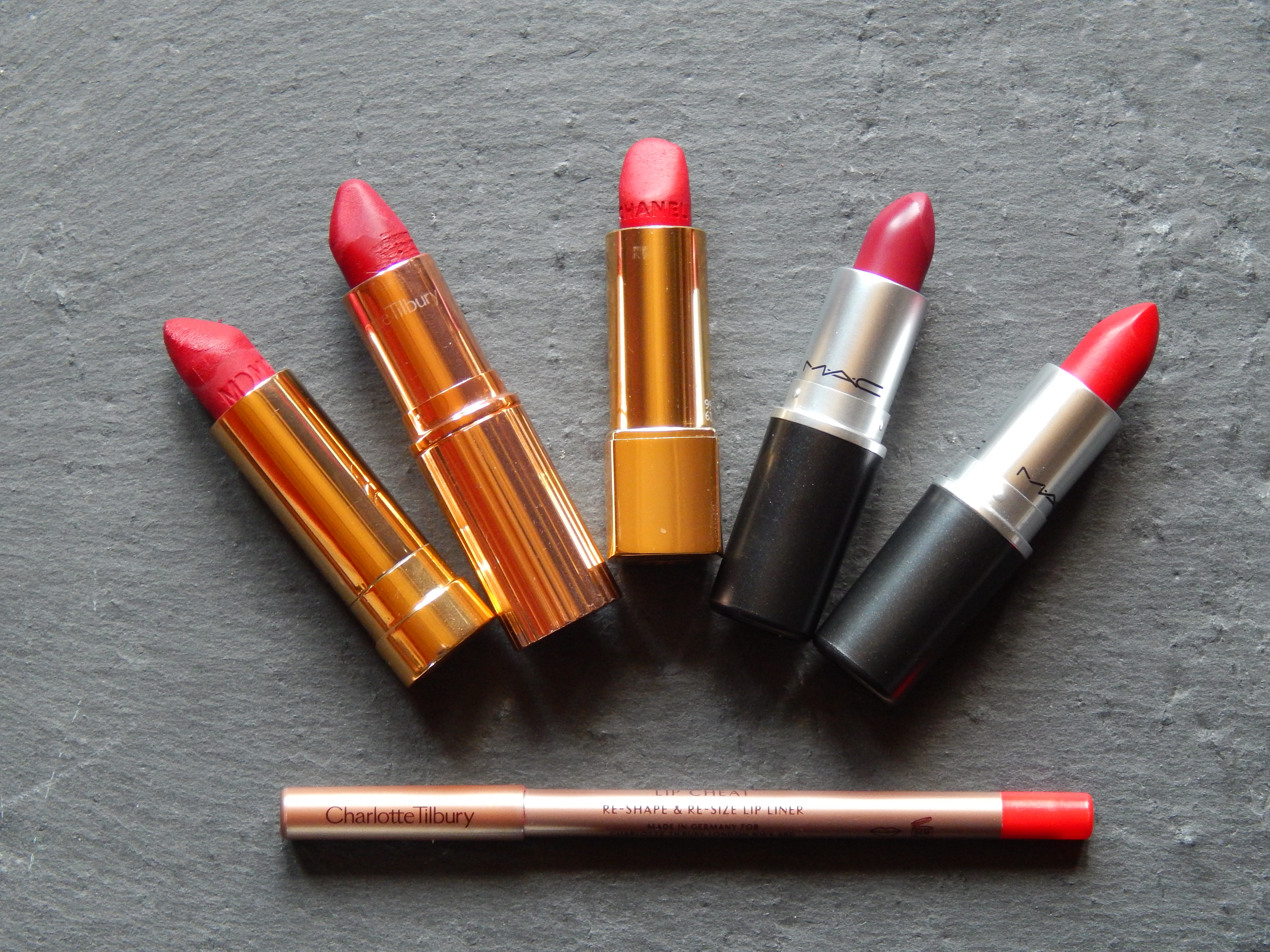 I probably have more lipsticks in my make-up collection than any other category of product and I’d say at least 90% of those are red. I love the simplicity of a red lip, the boldness of a red lip and in my case the wear-it-anywhere-ness of a red lip. I’ve tried to do a nude lip but it’s just not for me. I tend to lean more towards a blue-based red as I feel it gives a more polished look and I don’t really go for anything with a lot of shine and definitely no shimmer. Here I reveal my favourites, old and new.
