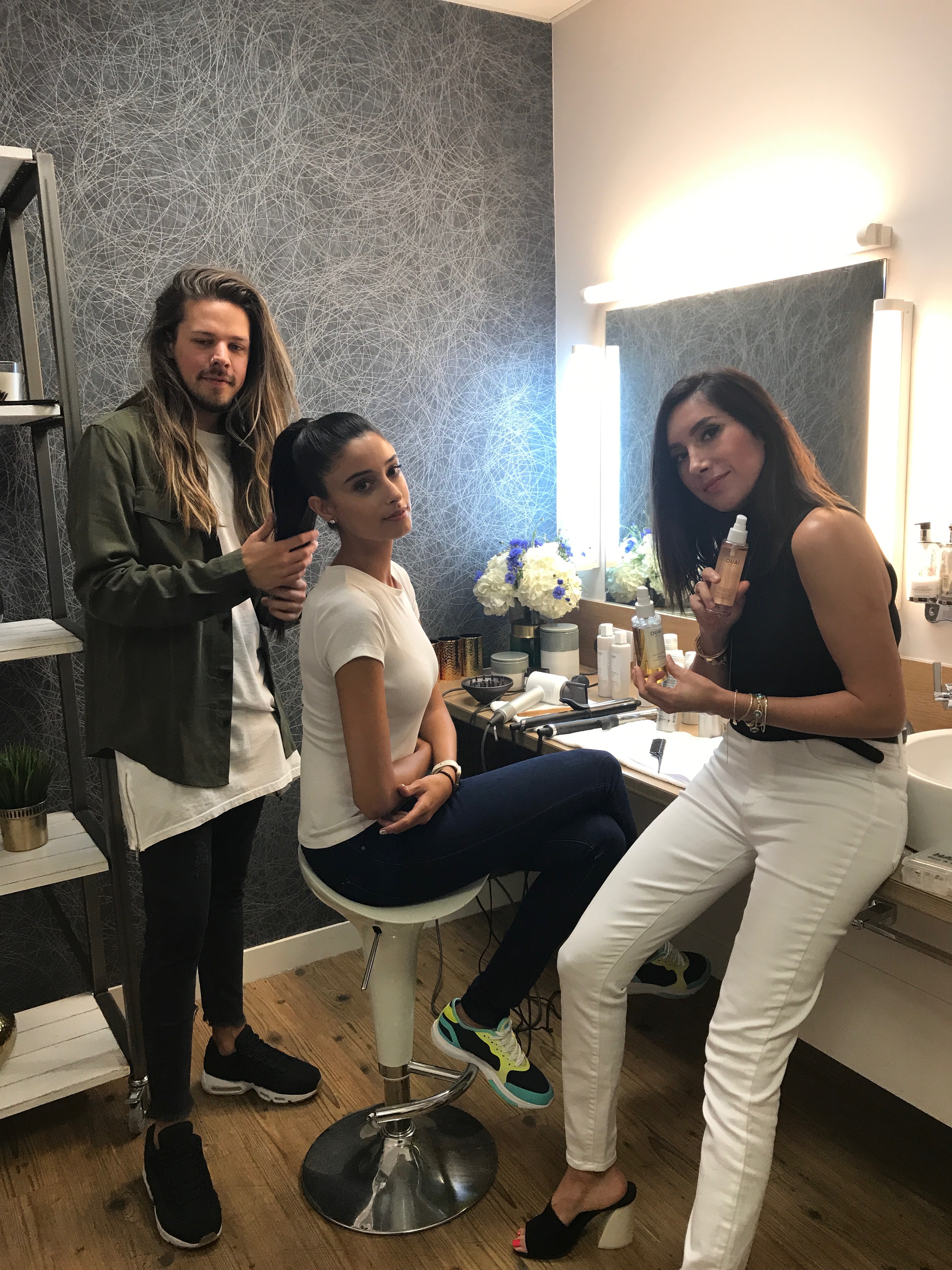 Jen Atkin and hairstylist Dom Seeley behind the scenes at This Morning